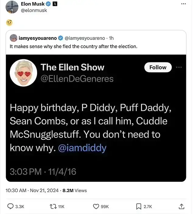 Musk quoted an earlier post shared to X that seemed to suggest the comedian could have knowledge about Sean ‘Diddy’ Combs’ ‘freak off’ parties – which played a part in the rapped being arrested.