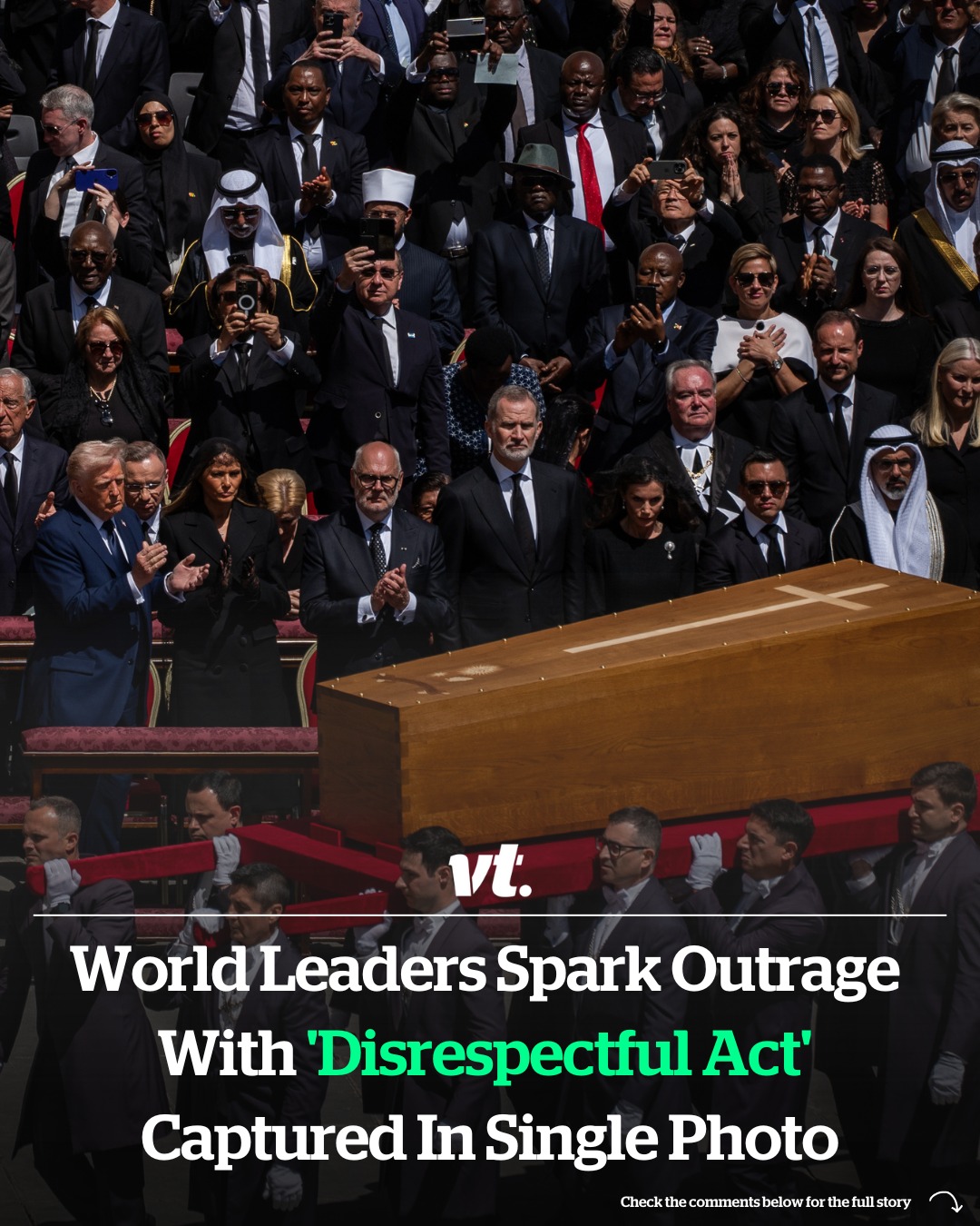 World leaders attending the Pope’s funeral have sparked outrage after they were spotted performing a “disrespectful act”.