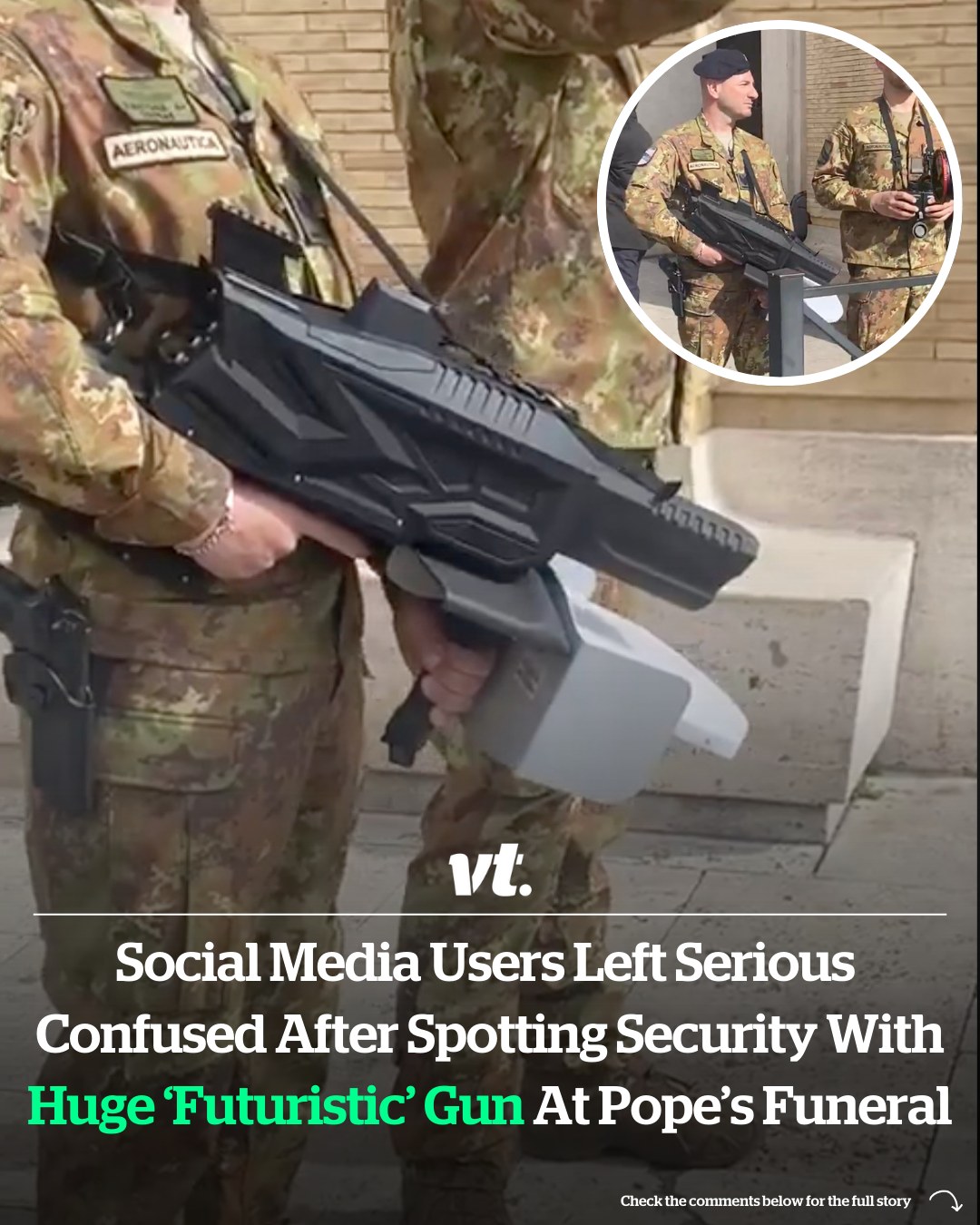 The truth behind the huge “futuristic” firearms seen at Pope Francis’ funeral has been revealed.