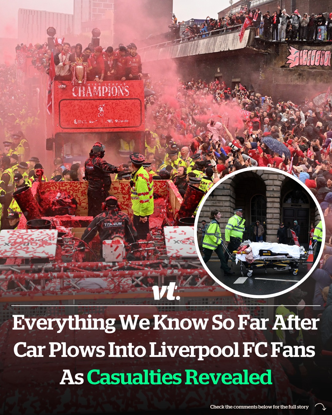 People had gathered in the area for the open-top bus parade of Liverpool Football Club to celebrate winning the Premier League.