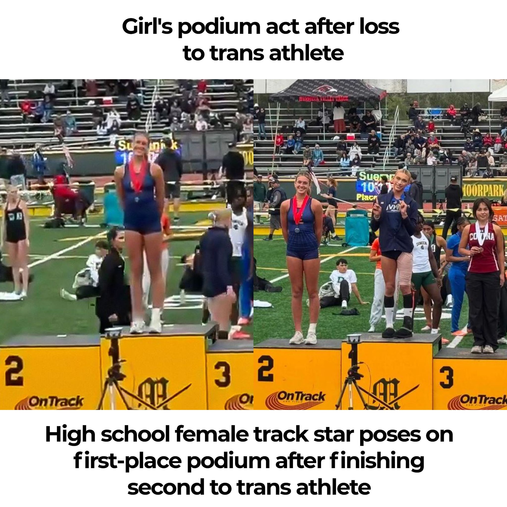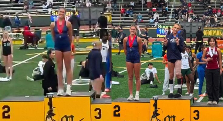 The footage showed High school female track star poses on first-place podium after finishing second to trans athlete quickly went viral and sparked debate among viewers.