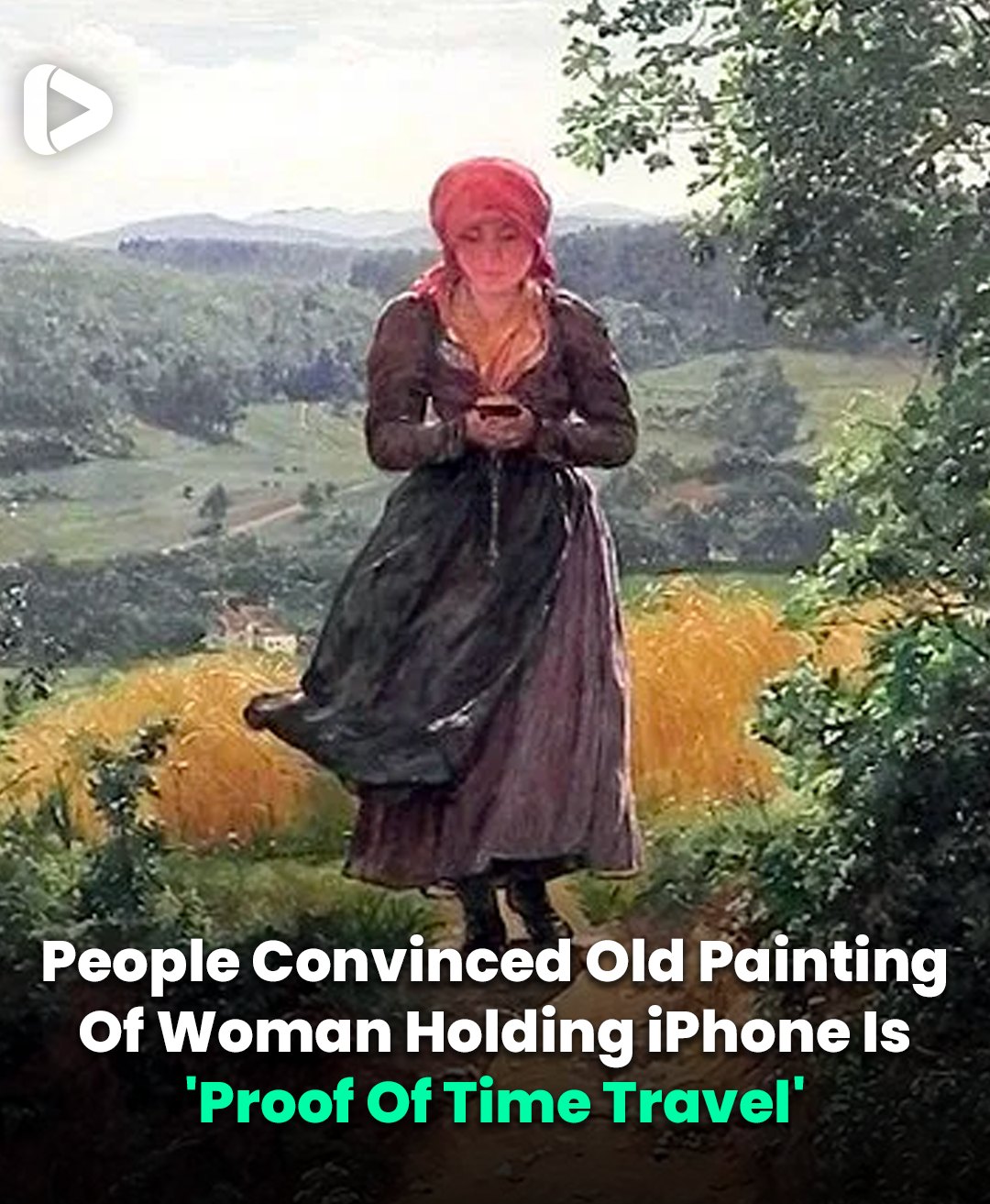 People have been left baffled by a 150-year-old painting of a woman – as it appears to show her using an ‘iPhone’.
