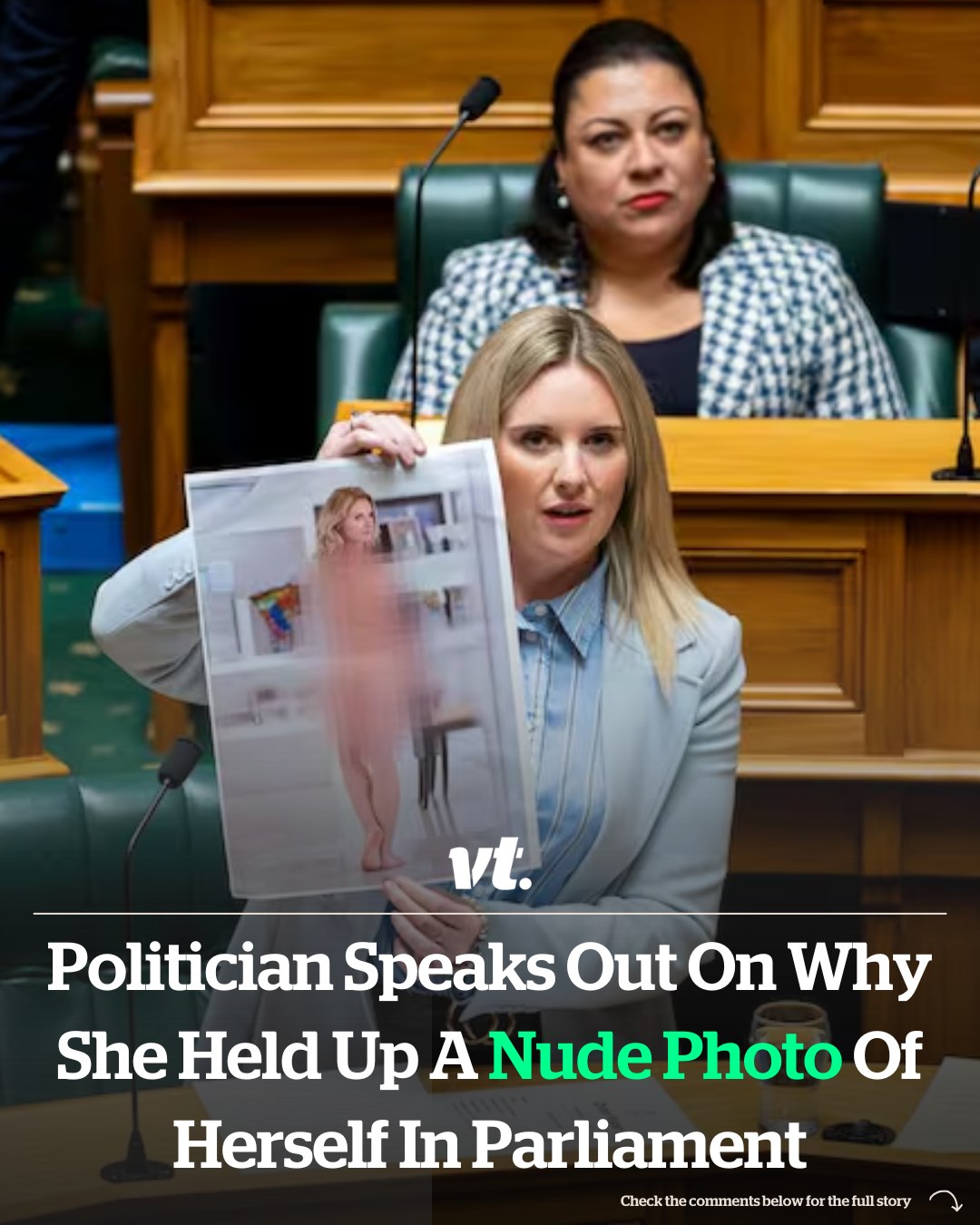 A politician has spoken out about why she opted to publicly hold up a nude photo of herself in Parliament.