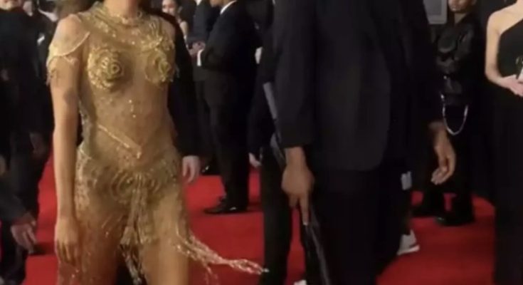 But it wasn’t just her victories or her performance of the hit song that had the internet buzzing—it was her jaw-dropping red carpet look and the mystery surrounding her security detail that had social media in overdrive.