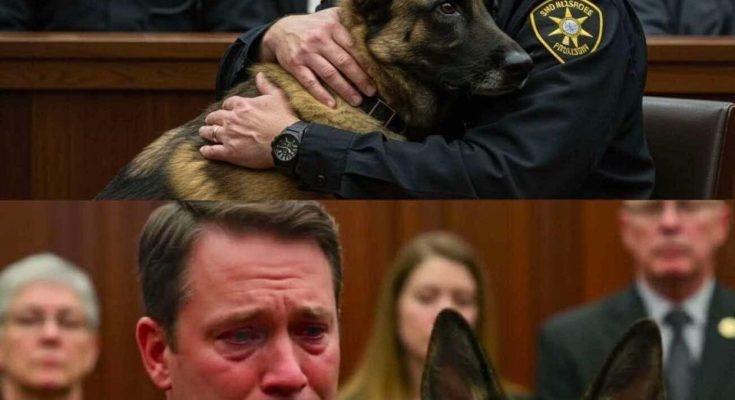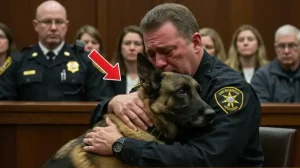 As Luke approached, he barked sharply, his instincts kicking in. He began sniffing around Michael’s jacket with sudden urgency. Then, in a moment that stunned the entire courtroom, a small metallic object dropped to the floor.