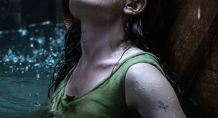 She’s forced to fight for her life when a violent storm knocks the container in which she has been hiding overboard.