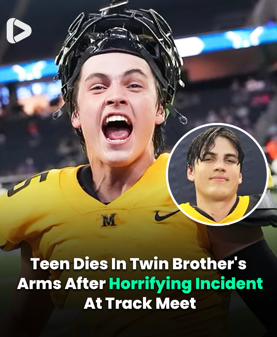 A teenager tragically died in his twin brother’s arms after a horrifying incident at a track meet.