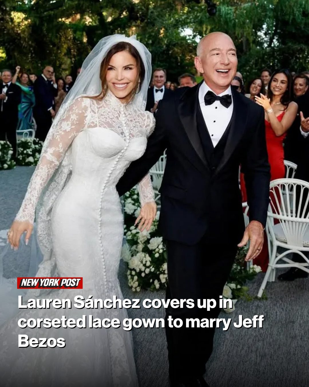 Lauren Sánchez married Jeff Bezos in a lavish Italian ceremony in Venice on Friday, walking down the aisle in a lace long-sleeved Dolce & Gabbana gown.