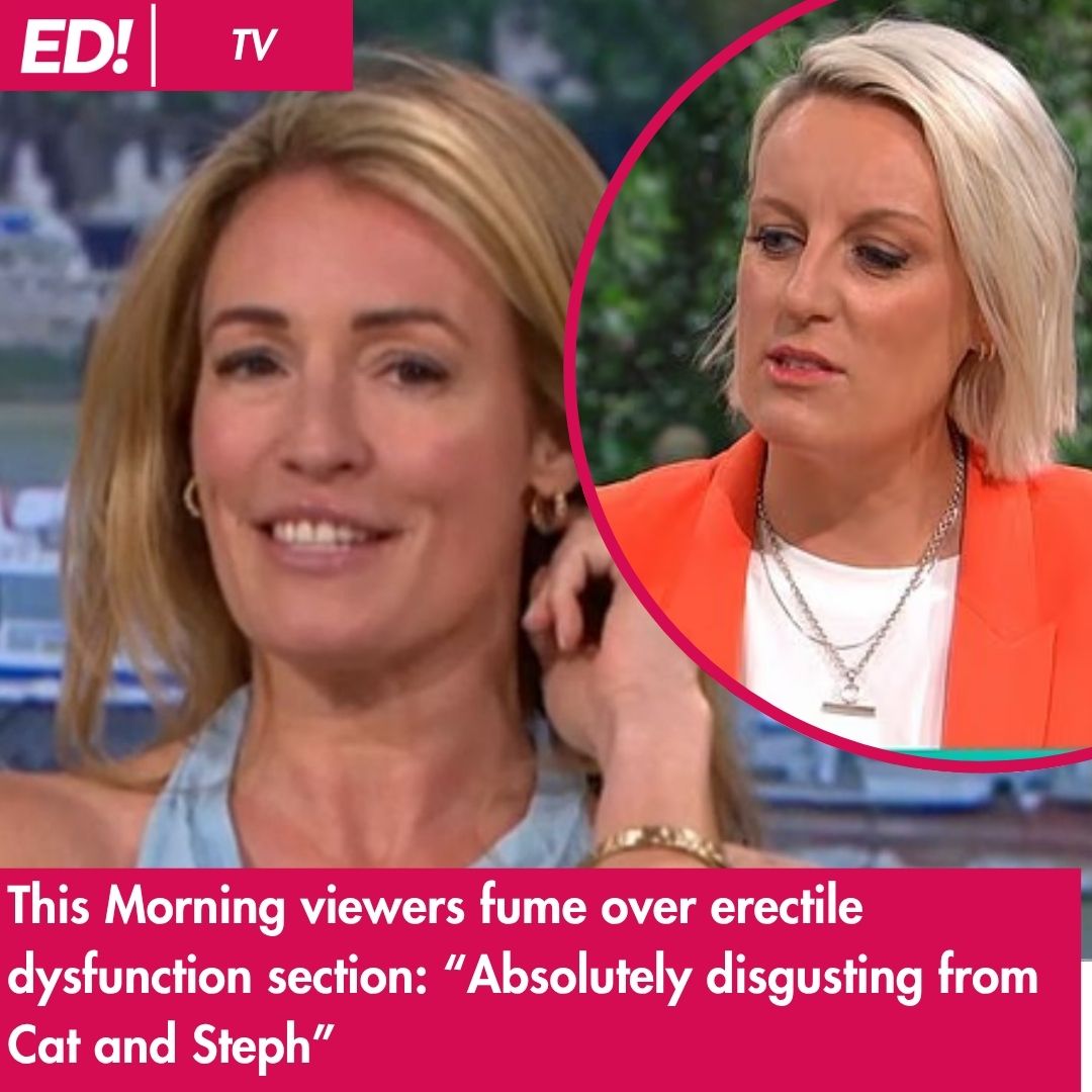 “Hey @thismorning, maybe tell Cat not to have a little giggle each time she says erectile dysfunction #thismorning,” another person complained.