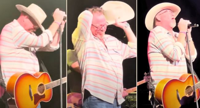 Pat’s heartache was evident, and he struggled to maintain composure during his performance. Then, near the end of the song, he delivered a tear-jerking message: