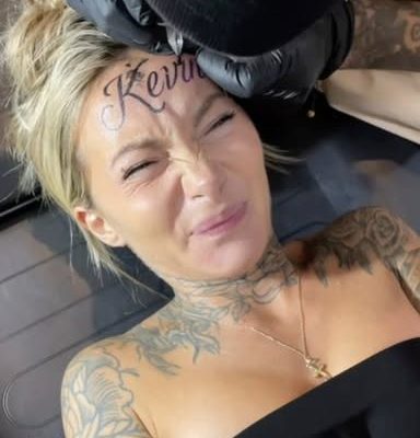 What do you think of this woman getting her boyfriend’s name tattooed across her forehead?