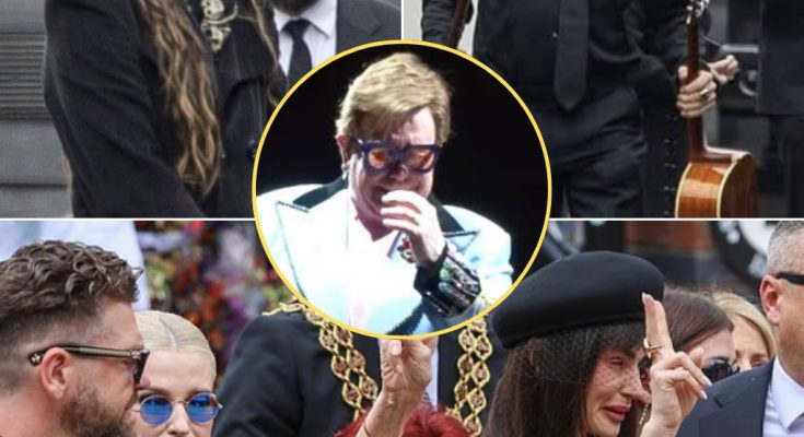 The hearse carrying the singer’s coffin was adorned with purple flowers spelling out ‘Ozzy’