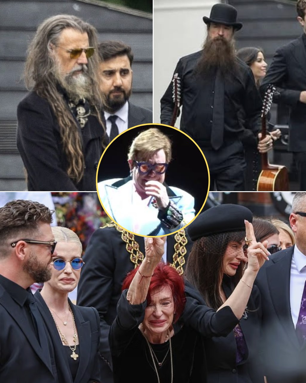 Ozzy’s widow Sharon, 72, was supported by their children Jack, Kelly and Aimee who laid floral tributes and made a peace sign as they gestured their gratitude to fans – while accompanied by Ozzy’s son Louis from his first marriage to Thelma Riley.