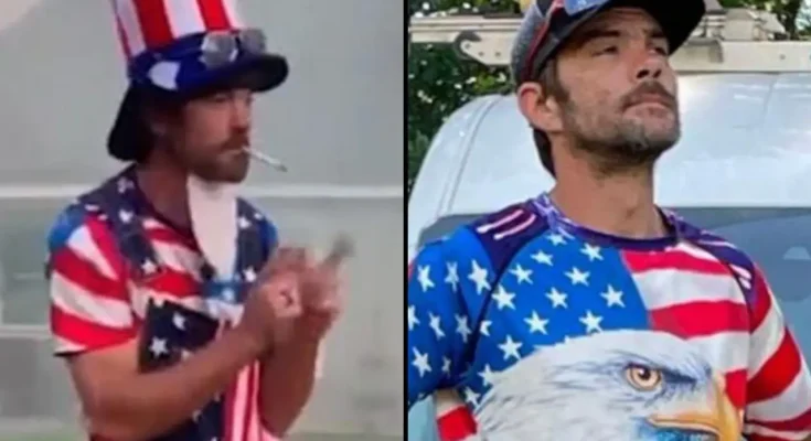 Footage of the incident shows the 41-year-old appearing happy and carefree. He wore a red, white, and blue Uncle Sam suit, with a top hat and beard.