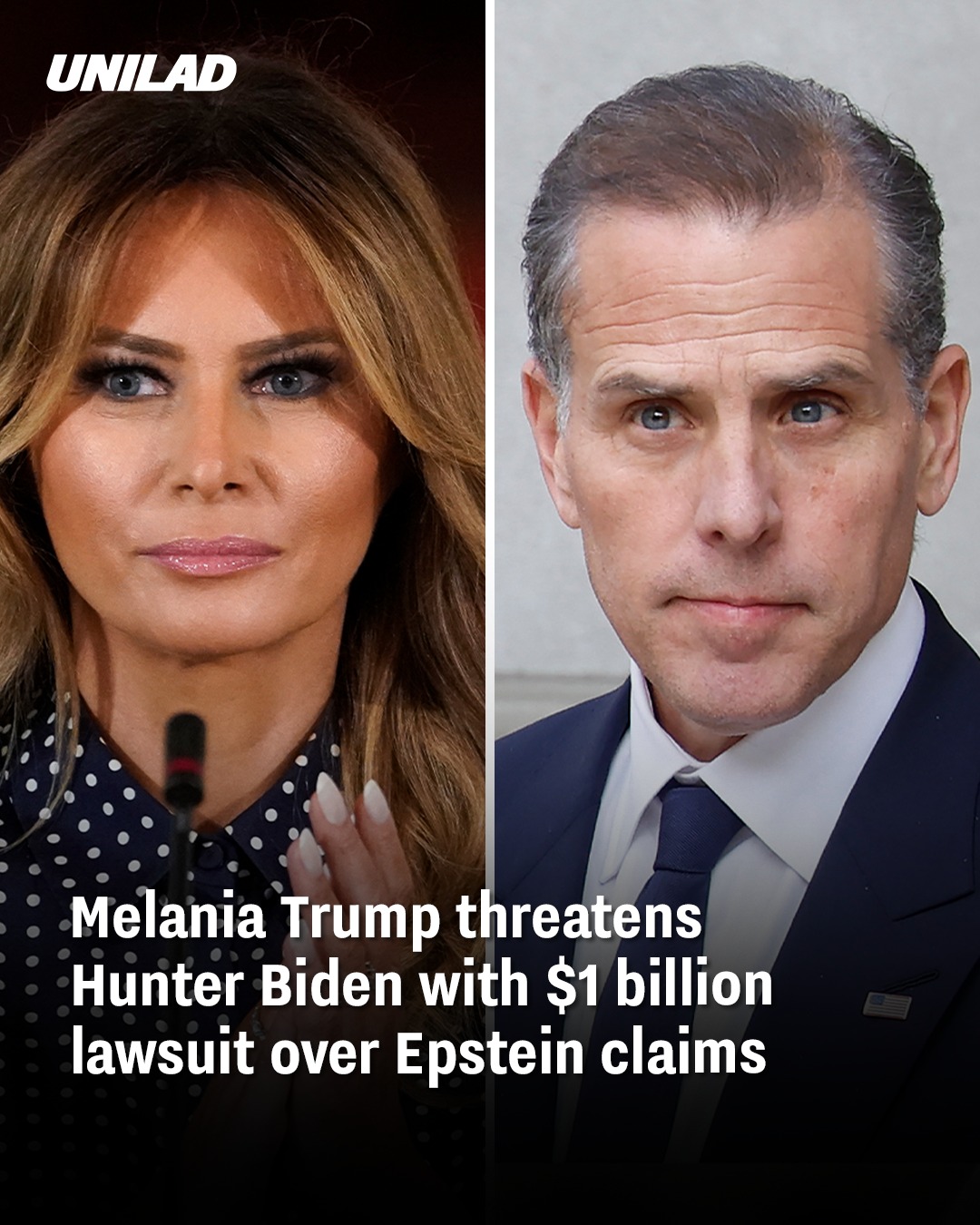 Melania Trump has threatened to sue Hunter Biden in a $1 billion lawsuit over claims he made about her links to notorious child sex offender Jeffrey Epstein.