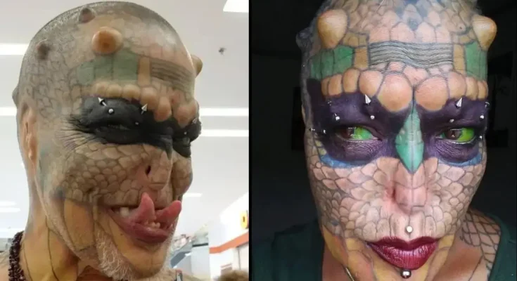 The former banker, from Texas, began their transformation following a profound dream in the 1980s involving snakes, which they interpreted as a sign that they were destined to become a ‘reptoid,’ per MailOnline.