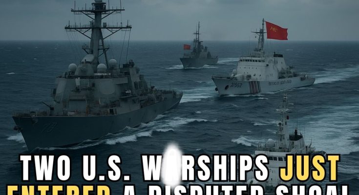 Tensions spiked in the South China Sea after two Chinese vessels collided near the Scarborough Shoal while pursuing a Philippine boat. In the aftermath, the United States briefly deployed two warships close to the shoal—an unmistakable signal that freedom of navigation and regional stability are on the line.