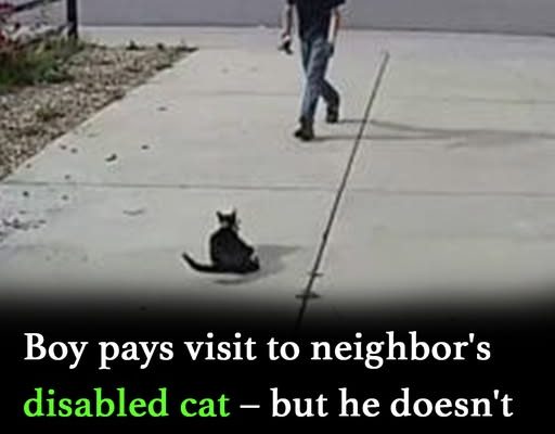 A boy was captured on camera visiting the cat every day, undeterred by his appearance, and sits with him, petting and playing with him.
