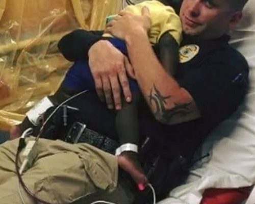 In that small hospital room, surrounded by the hum of machines and the flickering of lights, the boy’s fear slowly dissolved, replaced by the comforting rhythm of a heartbeat that he could trust. Through this act of simple kindness, the officer demonstrated that true strength often lies not in authority or power, but in the ability to offer care and solace when it is most desperately needed.