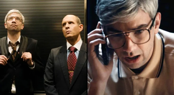 The story begins in 1997, where viewers witness BlackBerry co-creators Douglas Fregin (Matt Johnson) and Mike Lazaridis (Jay Baruchel), alongside Glenn Howerton, portraying ruthless investor Jim Balsillie.