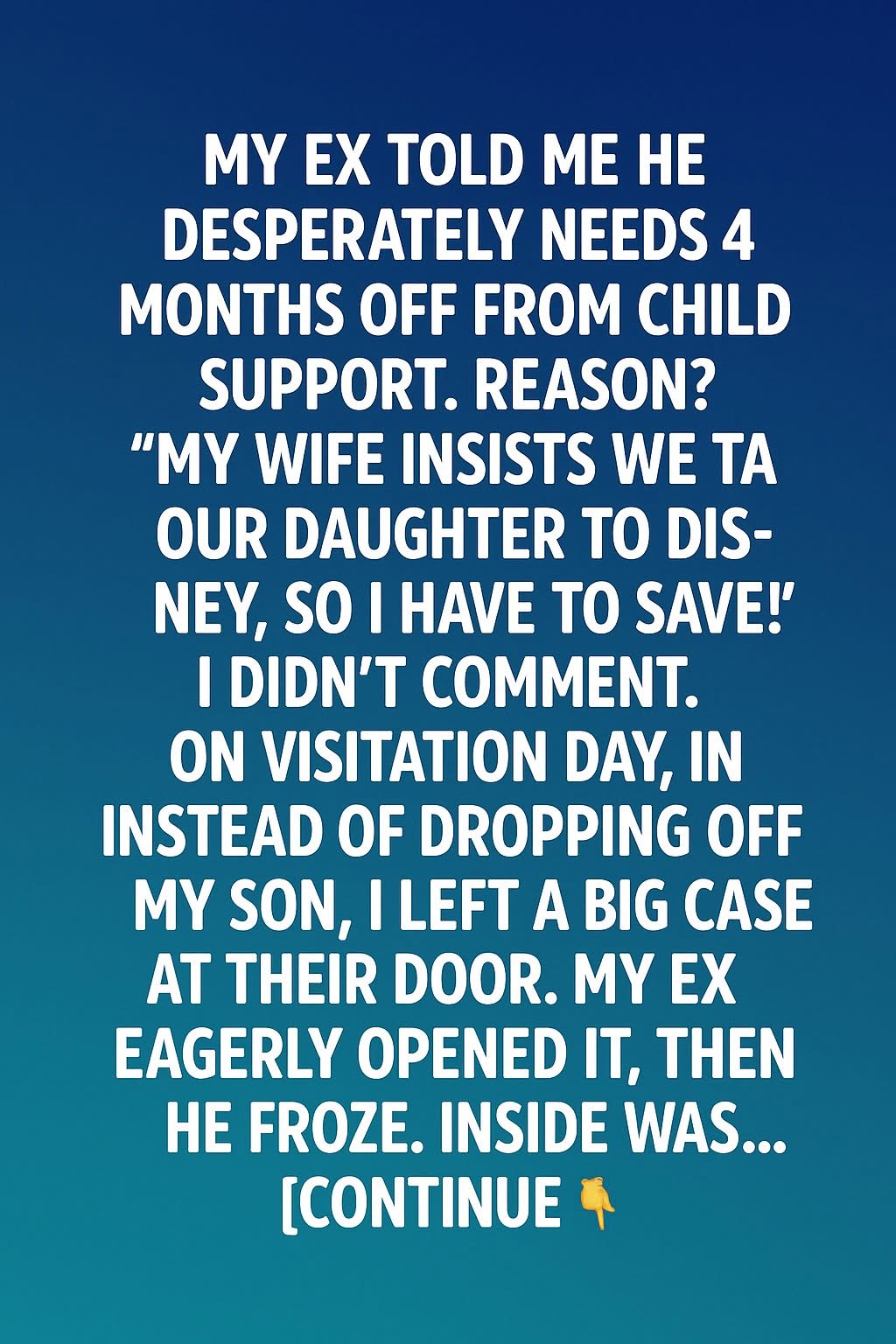 My ex-husband called me one evening with a request that left me speechless.He said, “I really need four months off from child support. My wife insists we take our daughter to Disney, and I have to save for the trip!”I couldn’t believe what I was hearing — our son’s well-being was being compared to a…
