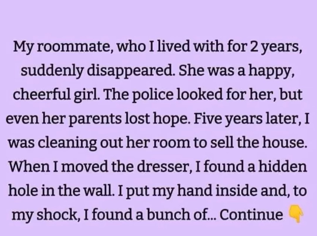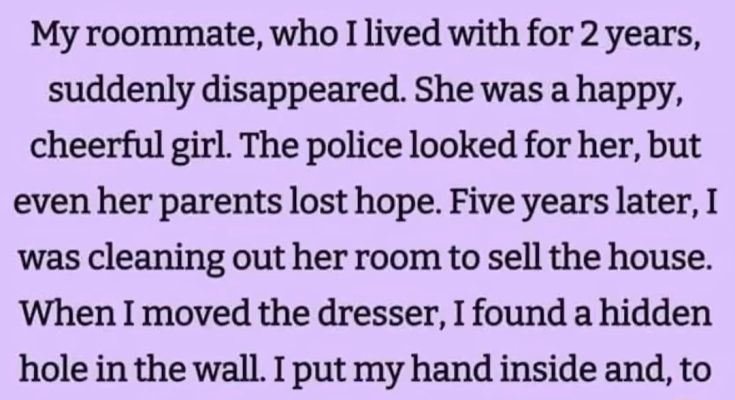 My roommate, who I lived with for 2 years, suddenly disappeared. She was a happy, cheerful girl. The police searched for her, but even her parents lost hope. Five years later, I was cleaning her room to sell the house. When