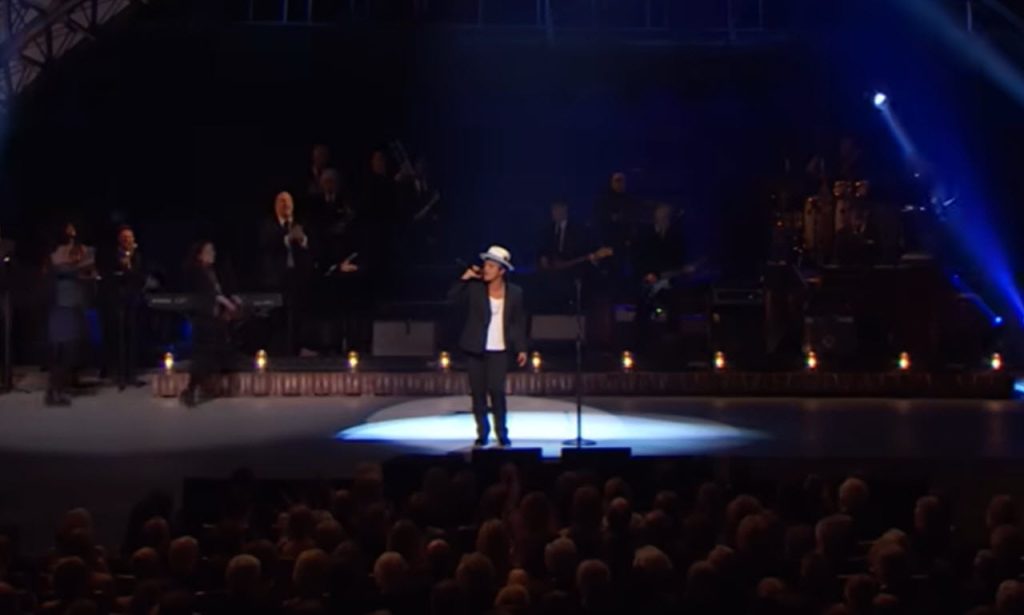 When Mars got to the “SOS” part, everyone on stage joined in, including Lady Gaga and Bruce Springsteen. That’s when Sting started pumping his fists, smiling widely, and then getting emotional with his hands on his face. It was obvious how much it meant to him to see someone else bring his song to life like that.