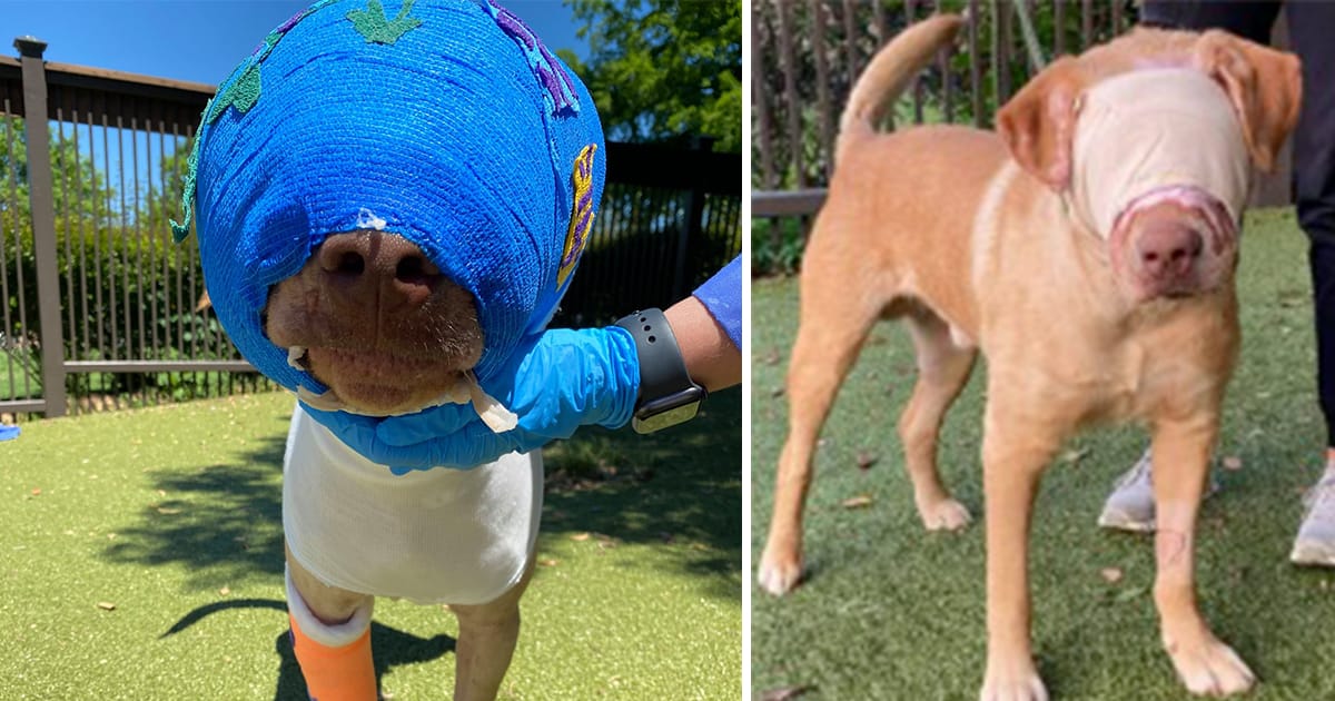 That was the case for one dog, who was the victim of a horrible attack in which his face was severely burned. But thankfully, he has since been making. a miraculous recovery, thanks to some kind vets.