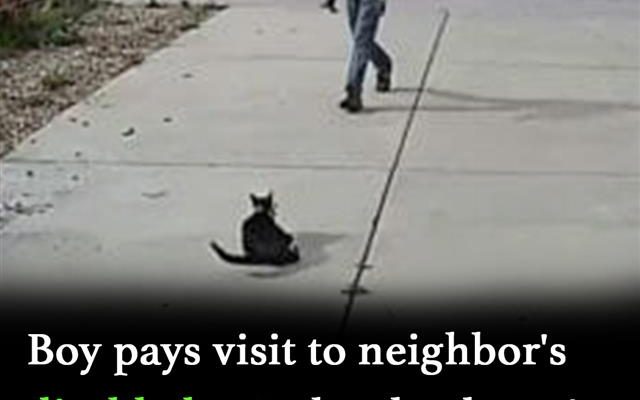 A boy was captured on camera visiting the cat every day, undeterred by his appearance, and sits with him, petting and playing with him.