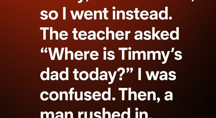 My wife always picks up our son from kindergarten. Today, because she wasn’t feeling well, I went instead. When I walked into the classroom, the teacher asked, “Where is Timmy’s dad today?” Before I could respond, another man hurried in, and she pointed at him. “There he is.” My son looked at him, then at me, and suddenly ran straight into my arms.