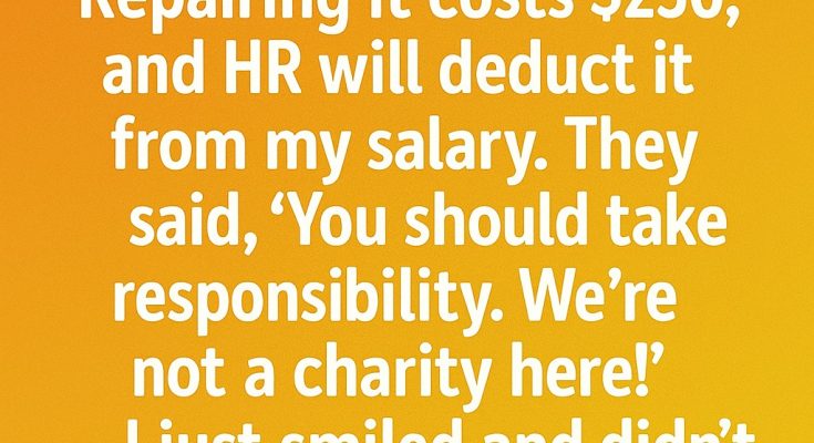 I accidentally broke the fancy coffee machine at work, and HR immediately informed me they would deduct the $250 repair cost from my salary. Their tone was firm, reminding me that responsibility mattered in the workplace. I simply nodded, even though the situation stung a little. Instead of arguing, I went home thinking about what I could do. By the next morning, I had a quiet plan in mind.