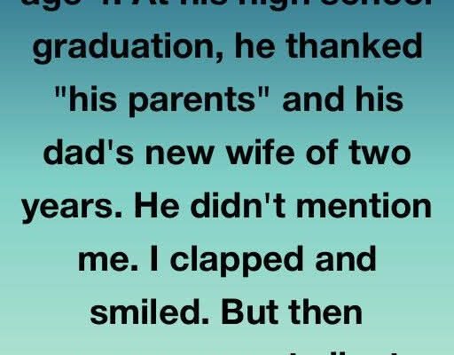 I raised my stepson from age 4. At his high school graduation, he thanked “his parents” and his dad’s new wife of two years. He didn’t mention me. I clapped and smiled. But then everyone went silent when I stood up and walked to the stage.