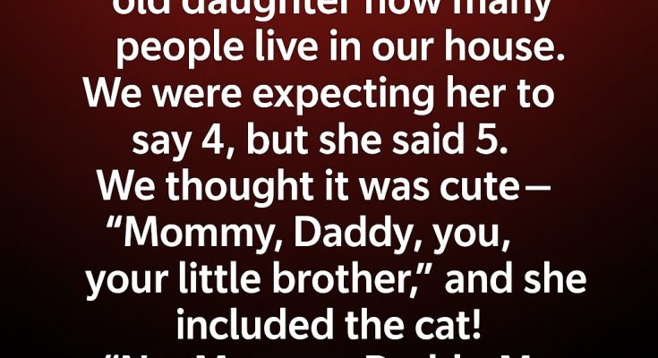 We asked our 2.5-year-old daughter a simple question one evening: “How many people live in our house?” We expected her to say four—me, my husband, her, and her baby brother. Instead, without hesitation, she said, “Five.” We laughed at first, assuming she meant the cat. But she shook her head firmly. “No, Mommy. Daddy. Me. Little brother. And…”