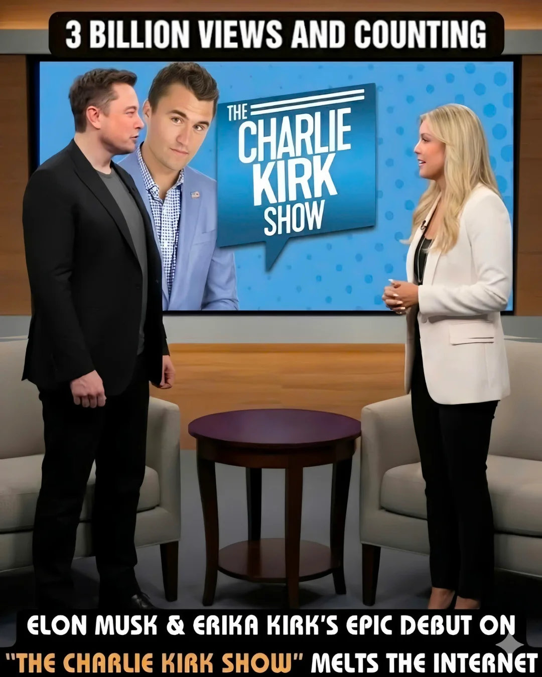In the attention economy of modern media, very few moments break through the noise so completely that they seem to dominate every platform at once. Yet within hours of its release, a new episode of The Charlie Kirk Show featuring Elon Musk and Erika Kirk did exactly that. Clips spread at lightning speed. Comment sections filled faster than they could be refreshed. Headlines—some breathless, some skeptical—began circling a staggering claim: three billion views and counting.