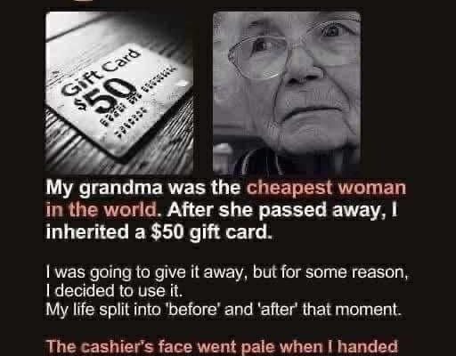 My grandmother wasn’t cheap. She was known there. Quietly. Secretly. She bought gift cards all the time—and left them behind.